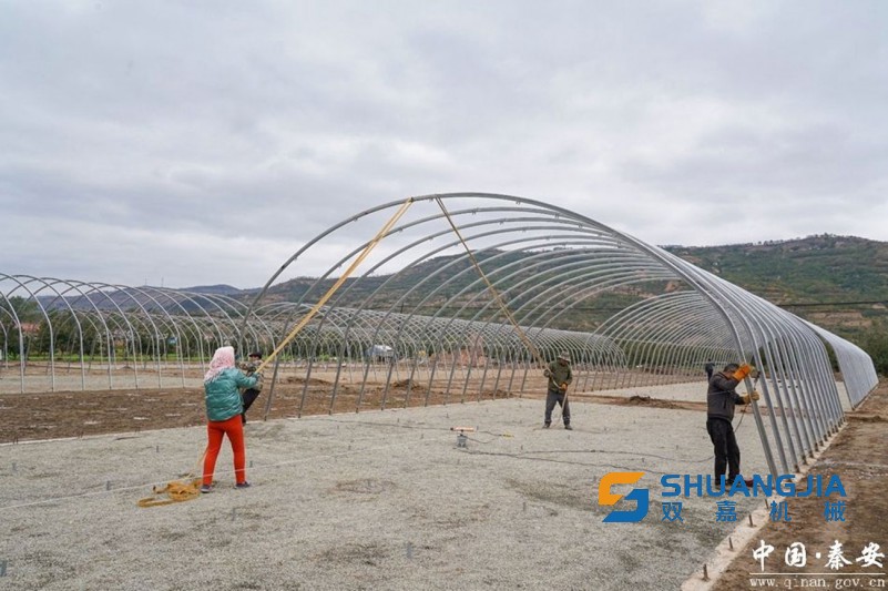 甘肅秦安:蔡河村食用菌基地,20座食用菌大棚建設(shè)加速